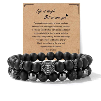 • Triple Protection: This unique 2-piece set features powerful healing stones: black obsidian, hematite, and lava stone, each known for their protective properties.